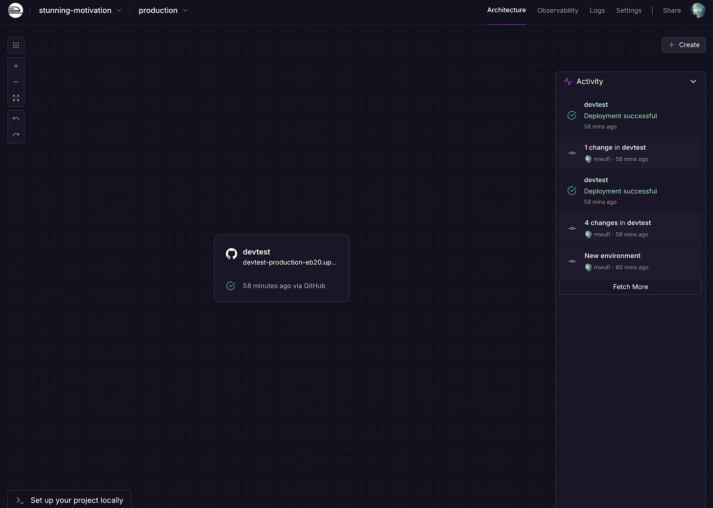 Listening on :8000!For production: It should be as easy to push to production as “git push”. Ideally, with as little “management” as possible! So I’m ruling out Google Cloud Functions or stuff like that.